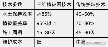三維植被網(wǎng)邊坡綠化技術(shù)通過立體網(wǎng)狀結(jié)構(gòu)形成物理支撐層,在土壤表層構(gòu)建穩(wěn)定的三維空間體系。該技術(shù)以高強度合成材料為基礎(chǔ),網(wǎng)孔結(jié)構(gòu)既能有效分散雨水沖刷力,又能為植物根系提供錨固空間,實現(xiàn)植被與基質(zhì)的協(xié)同生長。其核心價值在于將工程防護與生態(tài)修復相結(jié)合,通過下表對比可見其與傳統(tǒng)護坡方式的差異: