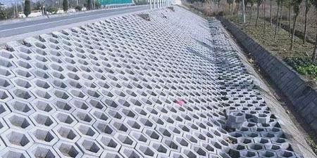 與干砌片石護(hù)坡技術(shù)頗為相似,它通過在修整好的邊坡上拼鋪正六邊形的混凝土框磚,構(gòu)建出蜂巢般的網(wǎng)格結(jié)構(gòu)。隨后,在每個網(wǎng)格內(nèi)鋪填適宜的種植土,并在磚框內(nèi)精心栽種或播撒草種。這一系列步驟構(gòu)成了一項創(chuàng)新的邊坡防護(hù)措施,旨在提升坡面的穩(wěn)定性并促進(jìn)植被的迅速生長。